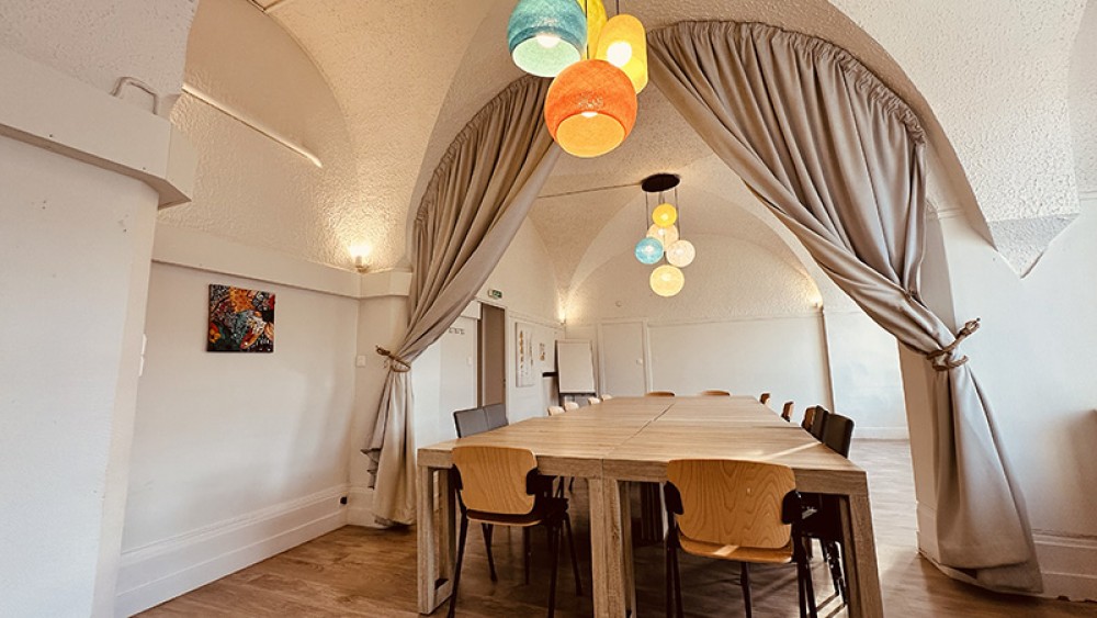 Les équipements disponibles (vidéoprojecteurs, paperboards, accès Wi-Fi, mobilier modulable, etc.) assurent un confort et une expérience fluide pour tous les participants. L'aménagement flexible des espaces permet également d'adapter le lieu aux formats les plus variés, séminaire, réunion, conférence, travail en sous-groupes, cercle de discussion.